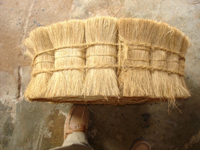 Coir fibre in various stages of production. Click on an image for an enlargement.